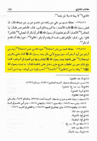 اما متاسفانه ادامه روایت را حذف میکند تا مبادا مردم بفهمند خلیفه دوم، سیده زنان اهل بهشت را تهدید کرده است که خانهاش را آتش خواهد زد.